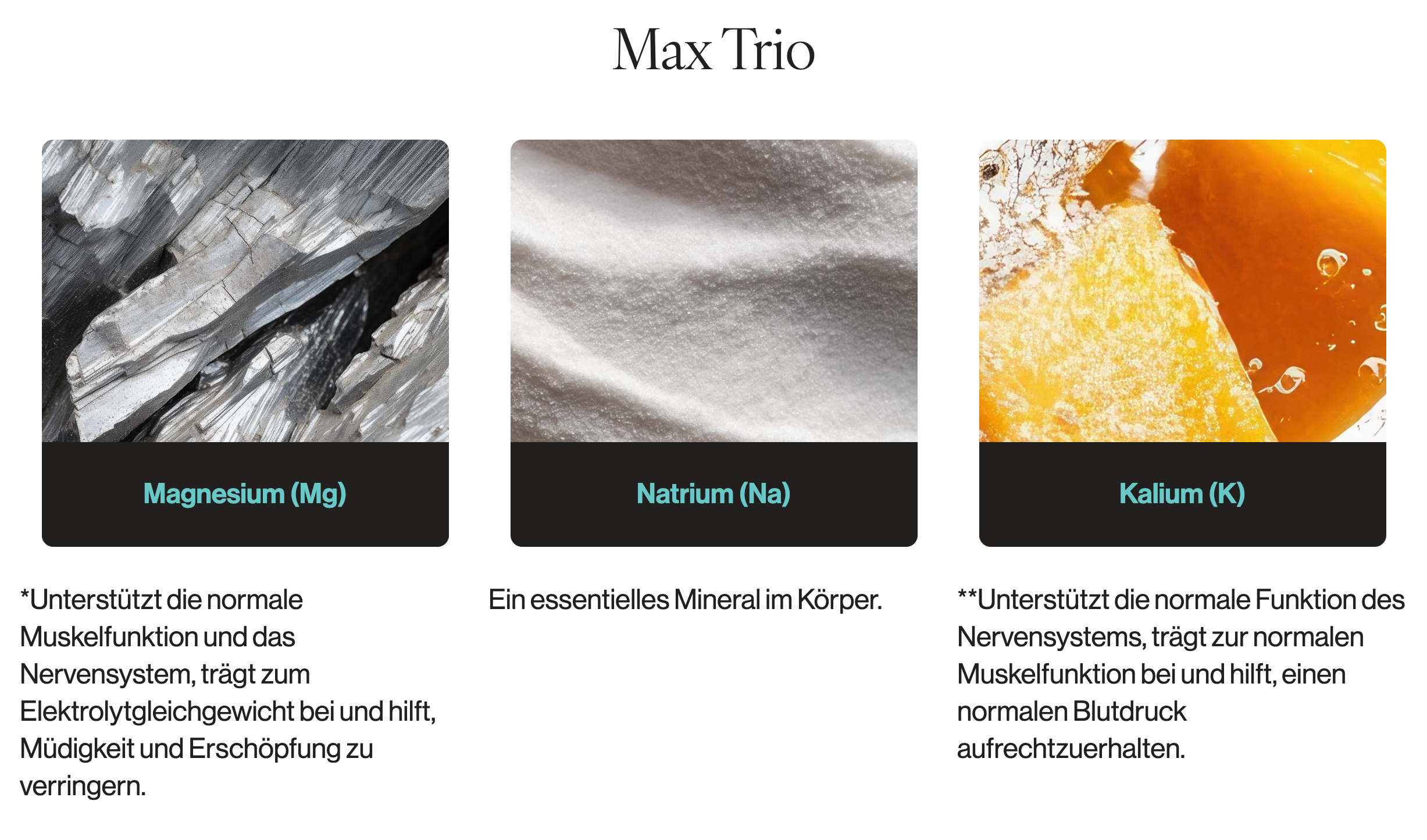 Bleib erfrischt* mit den essenziellen Elektrolyten von Max2O. Eine leckere, praktische Möglichkeit, dein Gleichgewicht* von innen heraus aufrechtzuerhalten, mit nur fünf Kalorien!