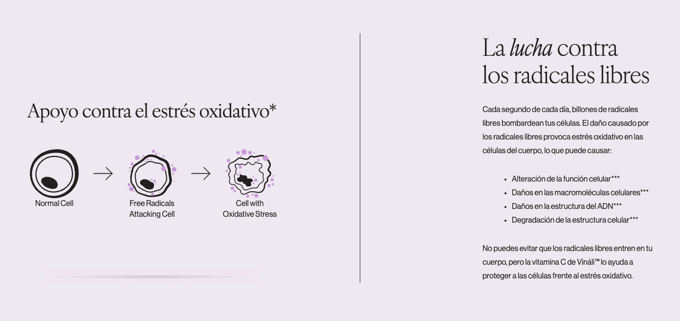 Favorece el bienestar de todo el cuerpo* con Vináli, una potente fórmula de amplio expectro de vitamina C, que contribuye a proteger las células del estrés oxidativo y favorece la producción de colágeno para el normal funcionamiento de la piel.