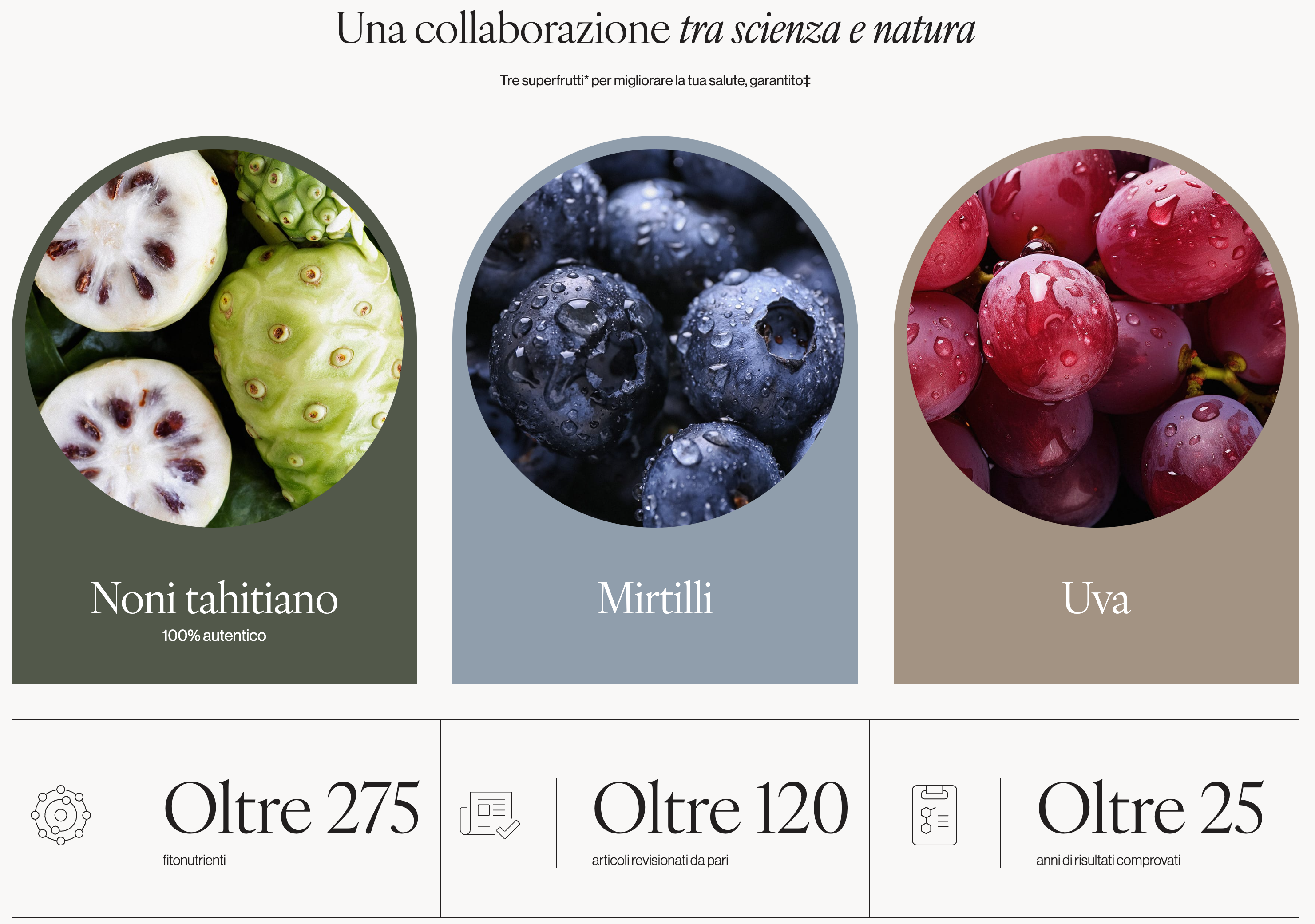 **Noni, che contribuisce alla normale funzione del sistema immunitario.