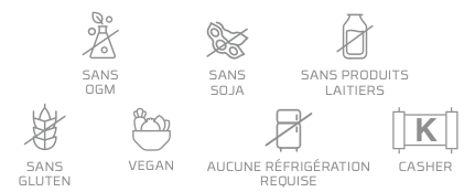 Culturiix est végétalien, sans gluten, sans produits laitiers, sans soja et sans OGM.