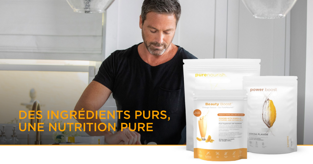 Mélanger une mesure de Power Boost™ avec deux mesures de PureNourish™ et 235 ml d'eau froide, de lait d'amande non sucré ou de lait de coco et savourer une fois par jour. Agiter vigoureusement pour mélanger.