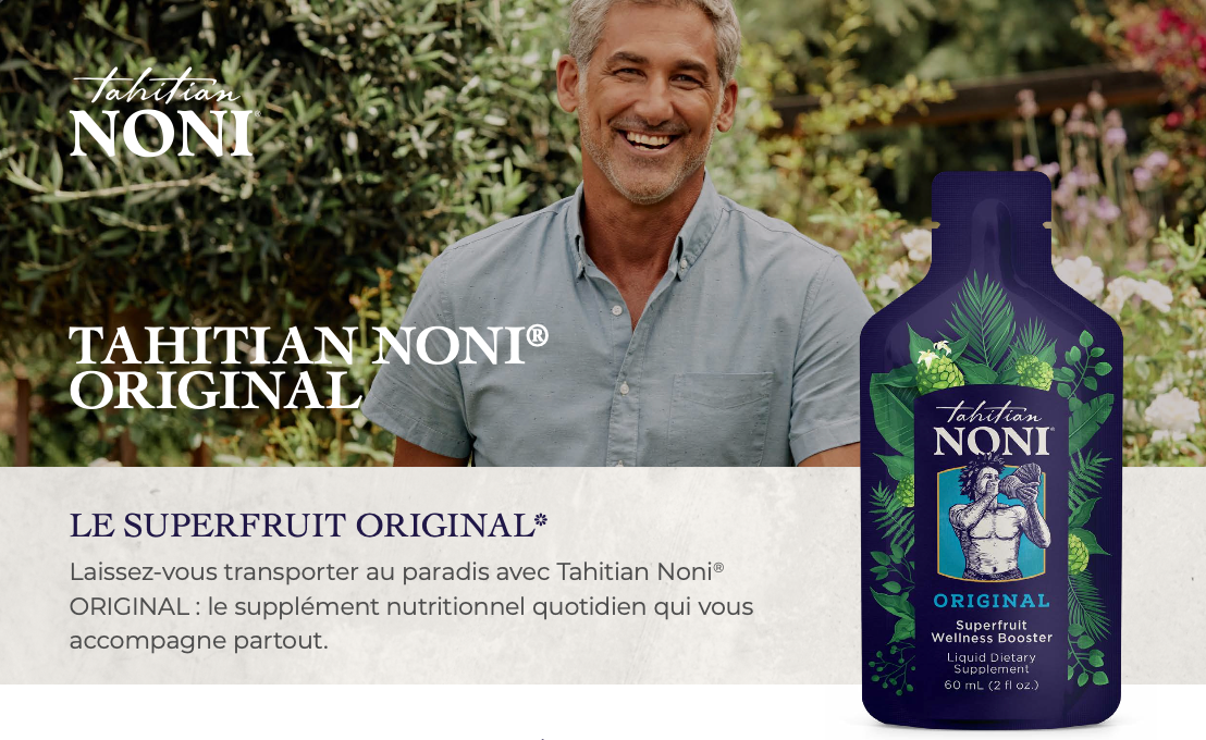 Laissez-vous transporter au paradis avec Tahitian Noni® Original. Ce mélange exceptionnel de noni, de myrtilles et de raisins apporte un soutien quotidien à l'ensemble de l'organisme* grâce à plus de 275 phytonutriments scientifiquement prouvés, dont des iridoïdes rares, des adaptogènes et des antioxydants*.